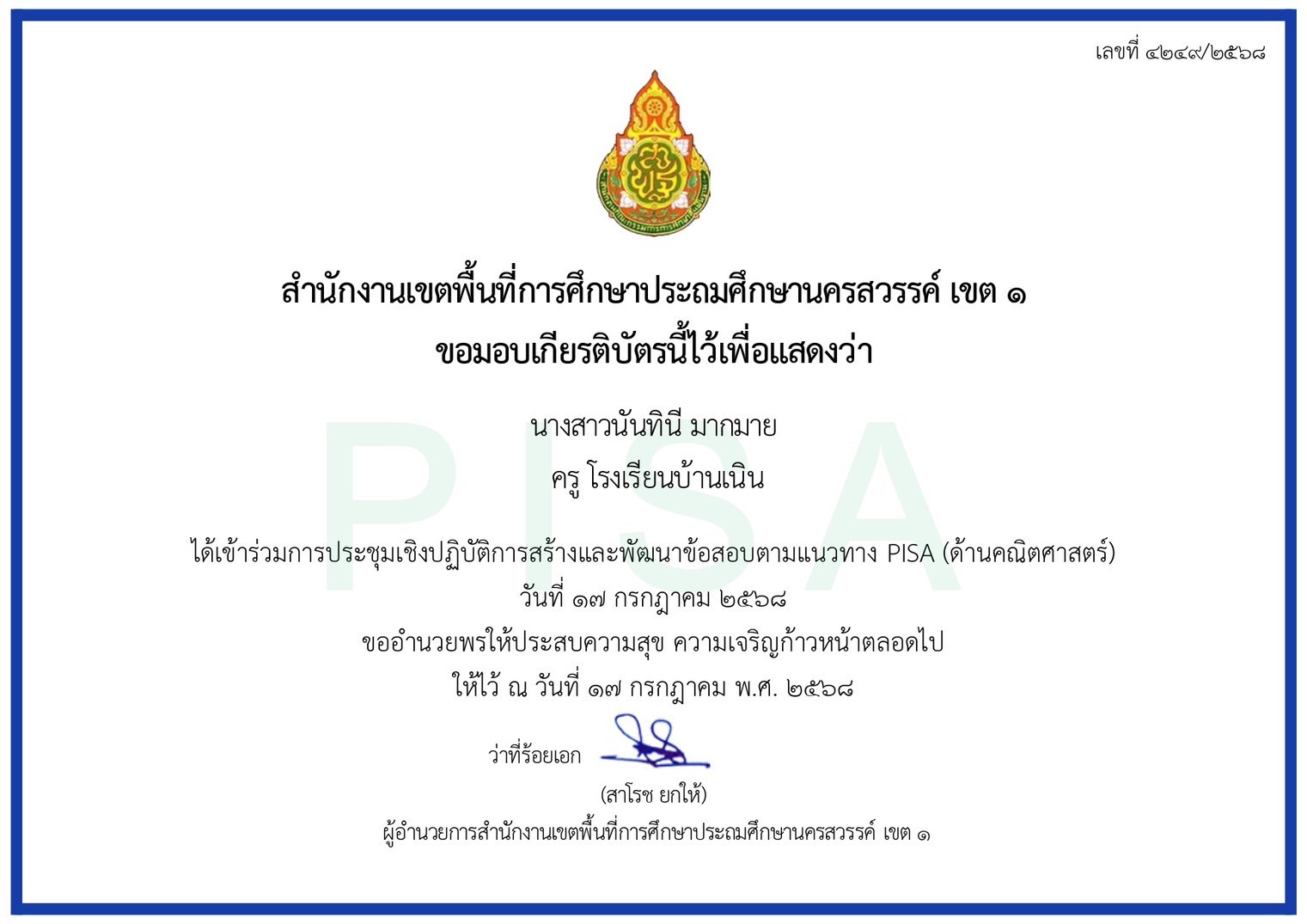 ชื่อผลงาน : เข้าร่วมการประชุมเชิงปฏิบัติการสร้างและพัฒนาข้อสอบตามแนวทาง PISA (ด้านคณิตศาสตร์)