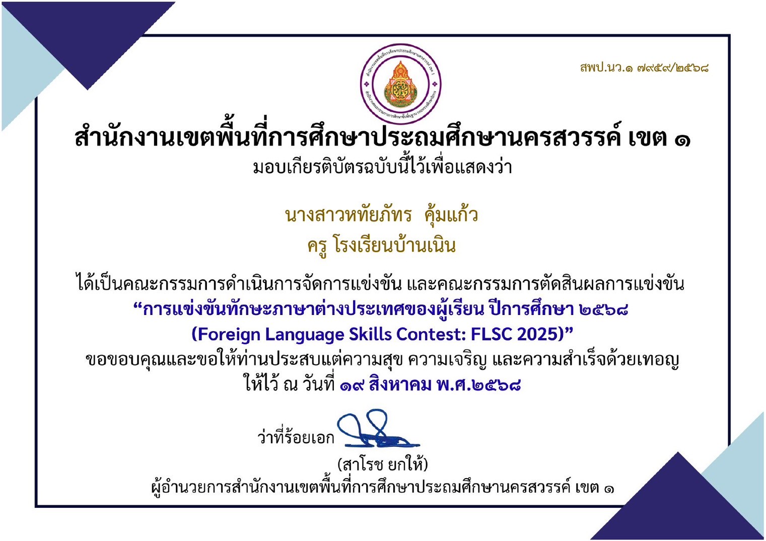 คณะกรรมการดำเนินการจัดการแข่งขัน และคณะกรรมการตัดสินผลการแข่งขัน การแข่งขันภาษาต่างประเทศของผู้เรียน ปีการศึกษา 2568 (Foreign Language Skills Contest : FLSC 2025) |