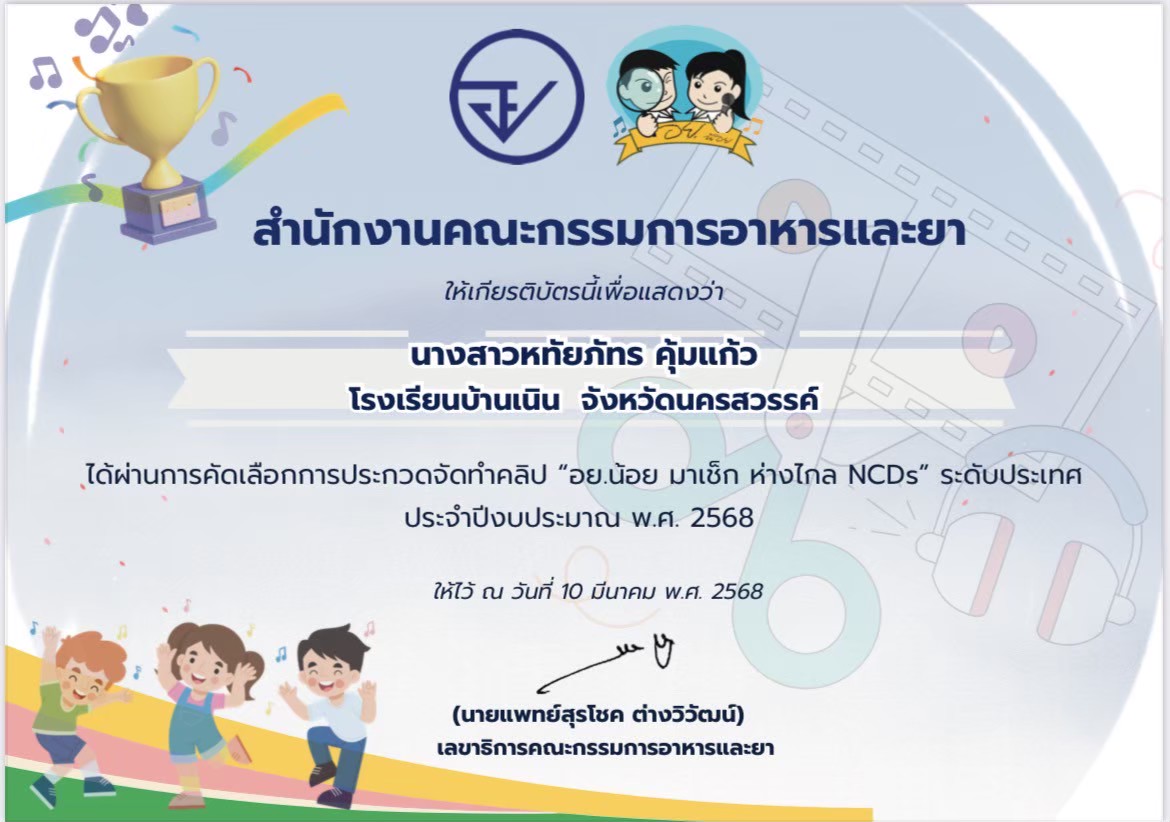 ชื่อผลงาน : การประกวดจัดทำคลิป "อย.น้อย มาเช็ค ห่างไกล NCDs" ระดับประเทศ