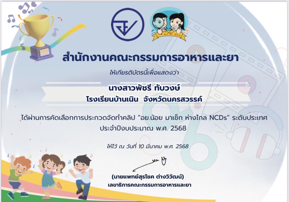 ชื่อผลงาน : การประกวดจัดทำคลิป "อย.น้อย มาเช็ค ห่างไกล NCDs" ระดับประเทศ