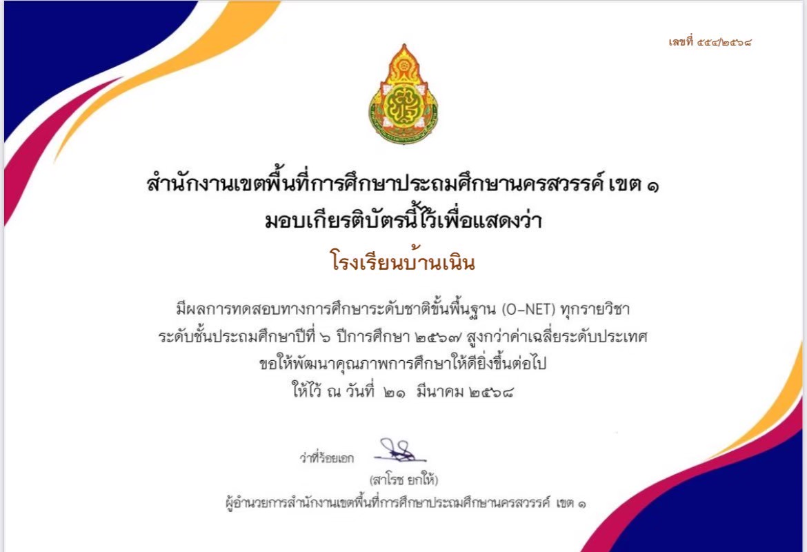 ผลการทดสอบทางการศึกษาระดับชาติขั้นพื้นฐาน(O-NET) ทุกรายวิชา ระดับชั้นประถมศึกษาปีที่ 6 ปีการศึกษา 2567 สูงกว่าค่าเฉลี่ยระดับประเทศ |