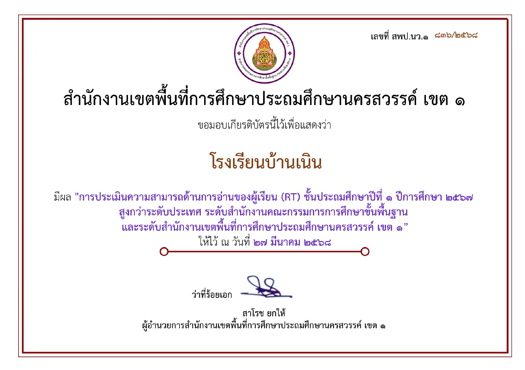 ชื่อผลงาน : การประเมินความสามารถด้านการอ่านของผู้เรียน(RT) ชั้นประถมศึกษาปีที่ 1 ปีการศึกษา 2567